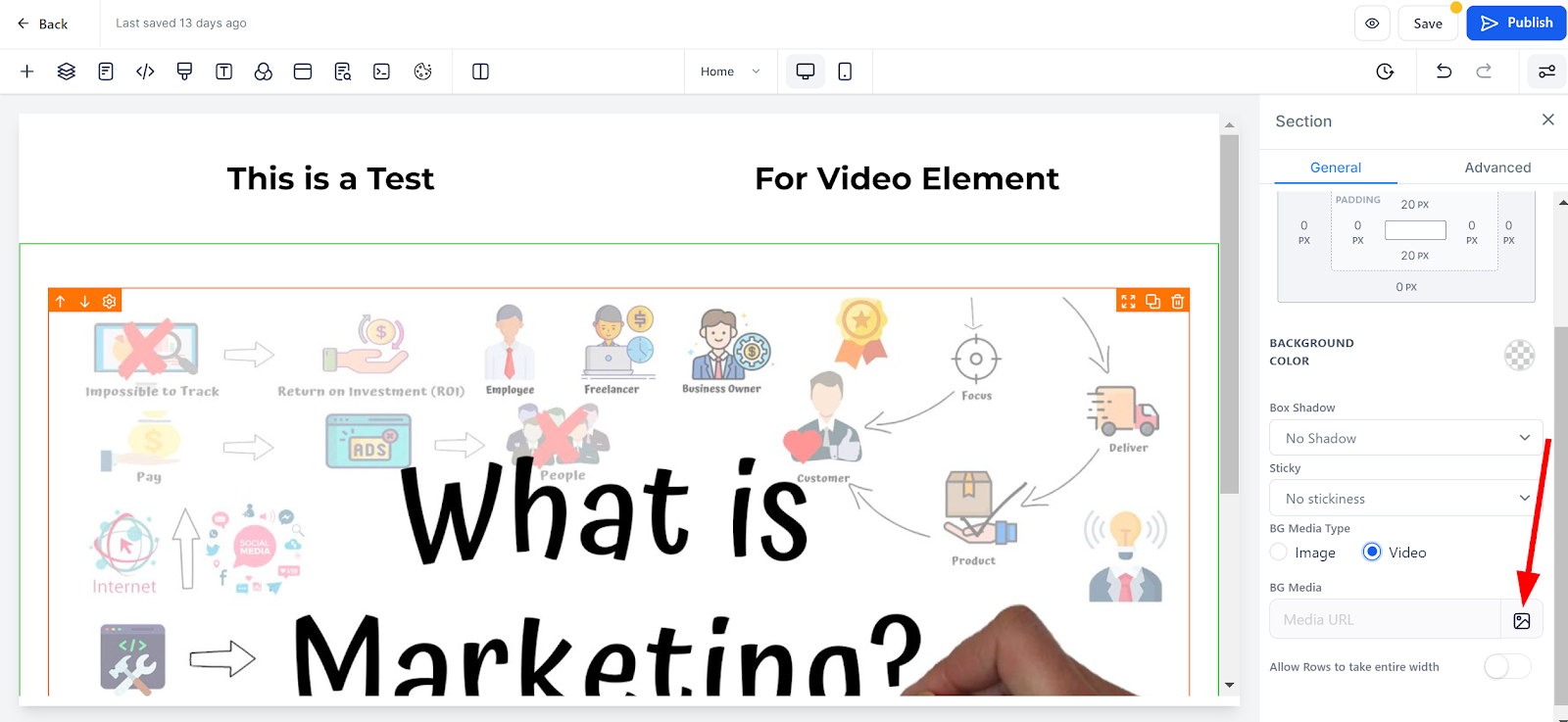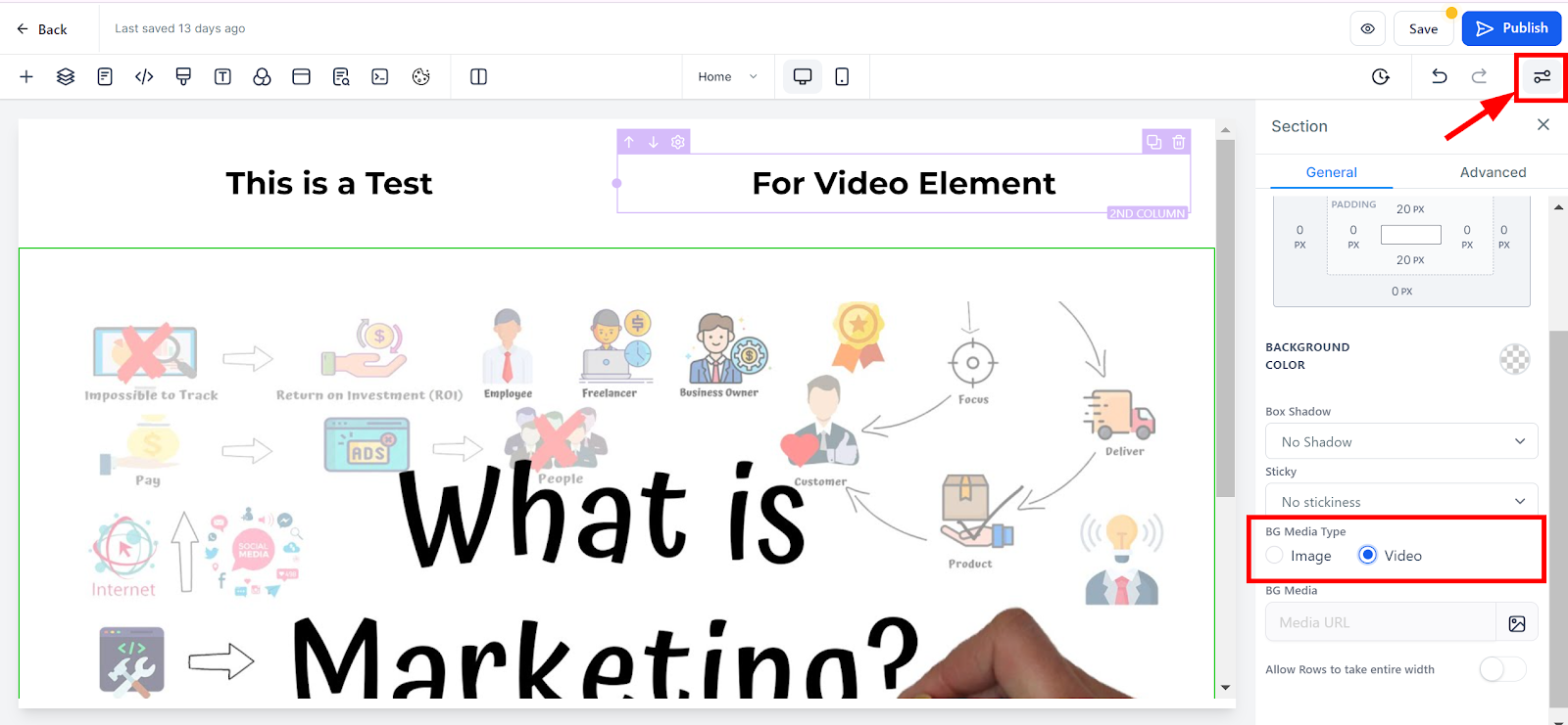 Navigate through the section settings until you find the "Background Media Type" option. This setting allows you to switch between using a static image or a video for your background.