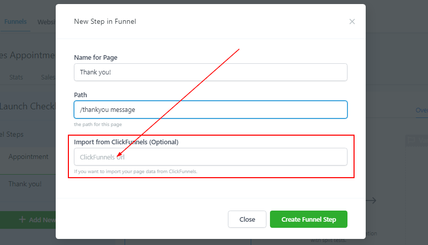 You can import funnels from ClickFunnels if needed. Just add the URL of your existing funnel in the designated field, making it easy to integrate your previous work into this platform.
