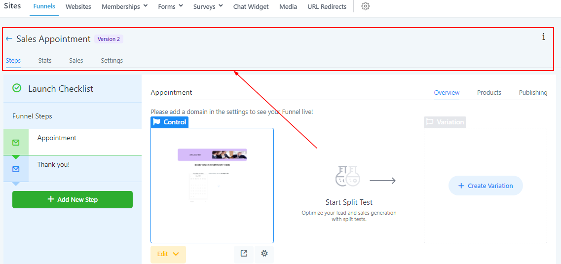 As an admin, you have the ability to conduct split testing on your funnel steps. Split testing helps optimize your funnels, allowing you to compare the performance of different variations to see which one performs best.