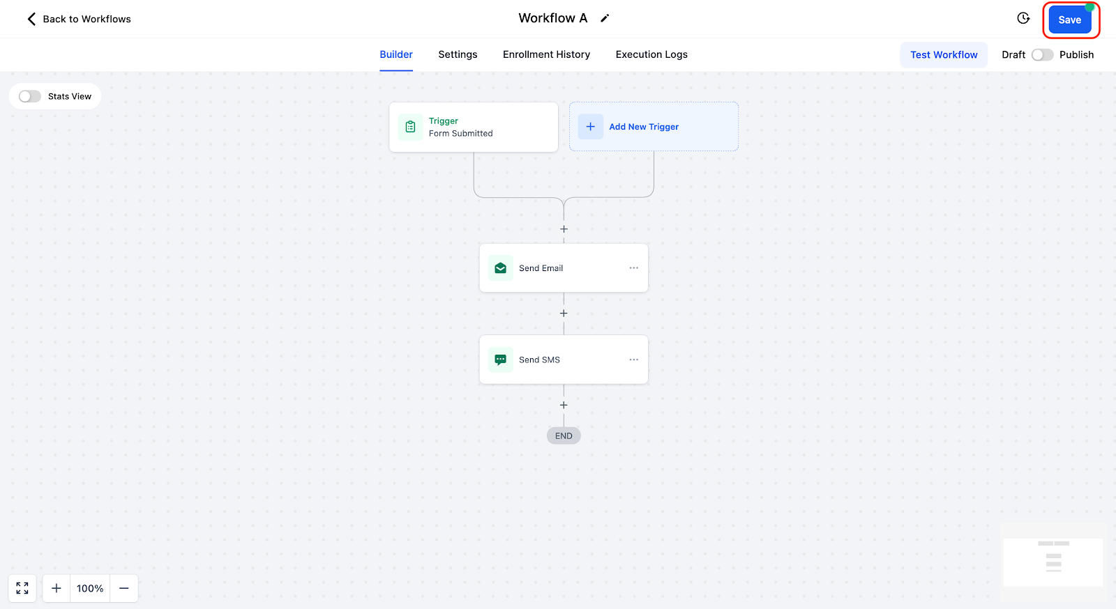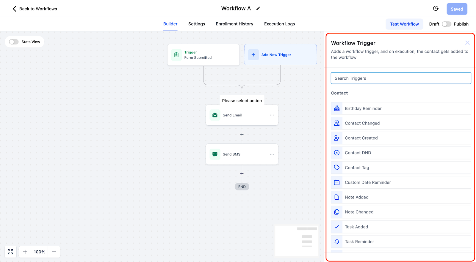 Click on "Add New Trigger" button to open the Workflow Triggers list