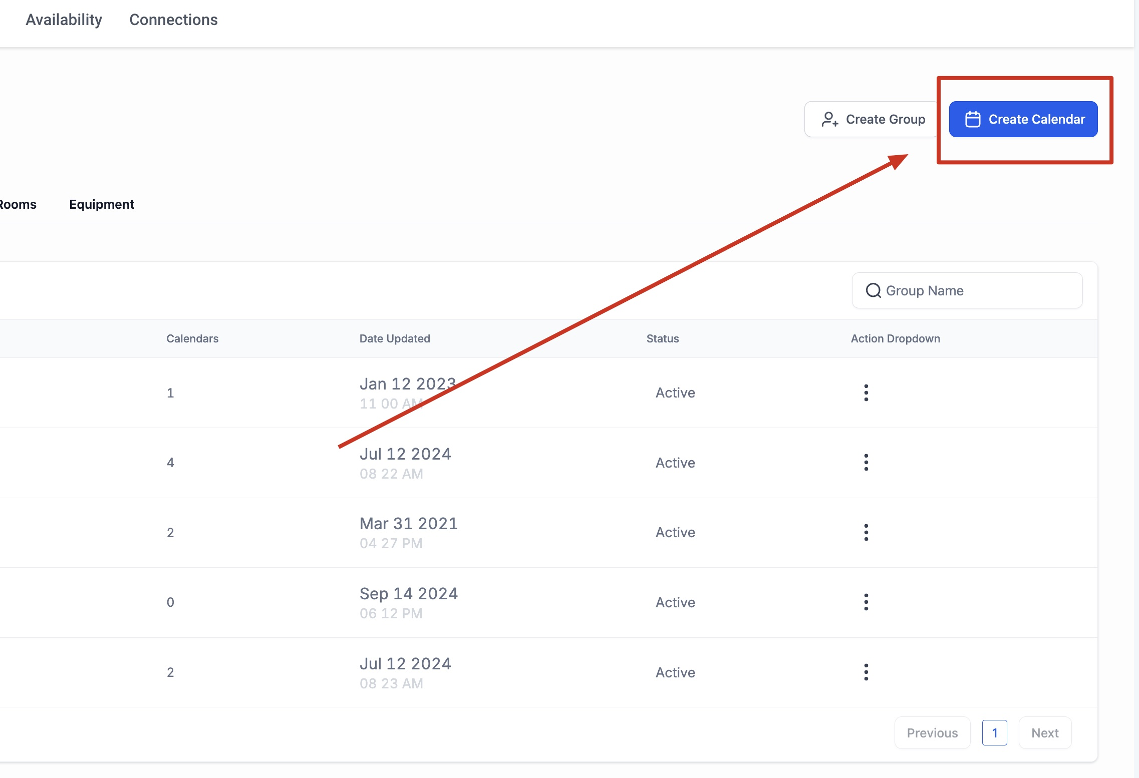 - Within the Calendars Tab, click "Create Calendar," then choose the "Service Calendar" option.