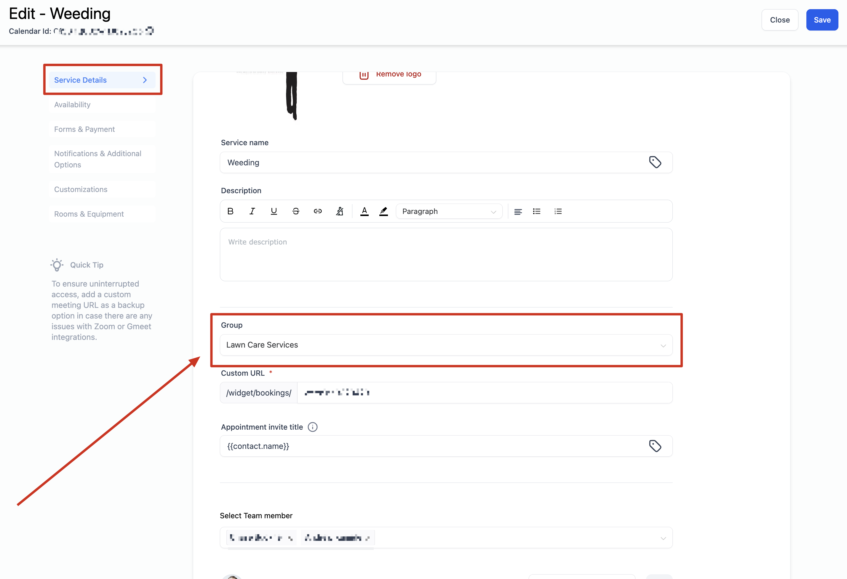 Link to Service Menu: If you intend to add this Service Calendar to your Service Menu (where all your services are showcased on one page), ensure you select a group for the calendar. Think of a group as a way to categorize similar services together. For example, you could create a group named "HAIR" and assign service calendars like "Hair Cut," "Hair Spa," and "Hair Coloring" to it.