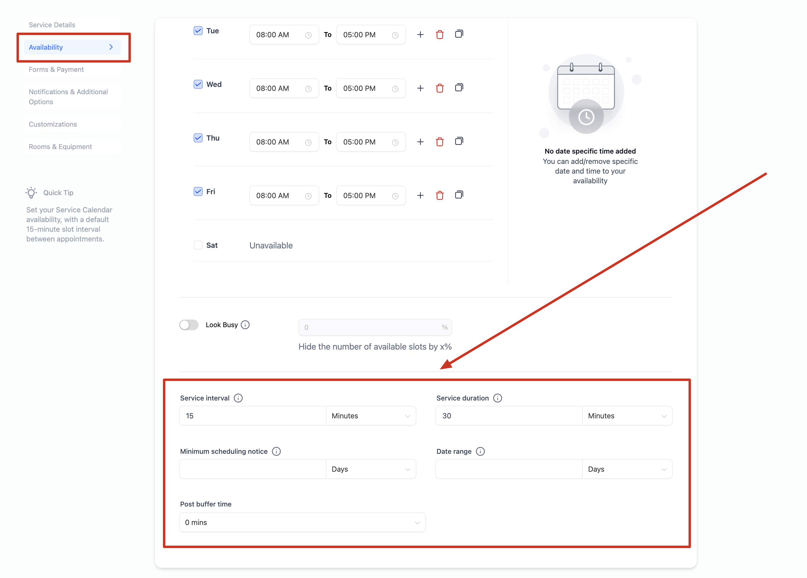 Service Duration: Set the length of each appointment.