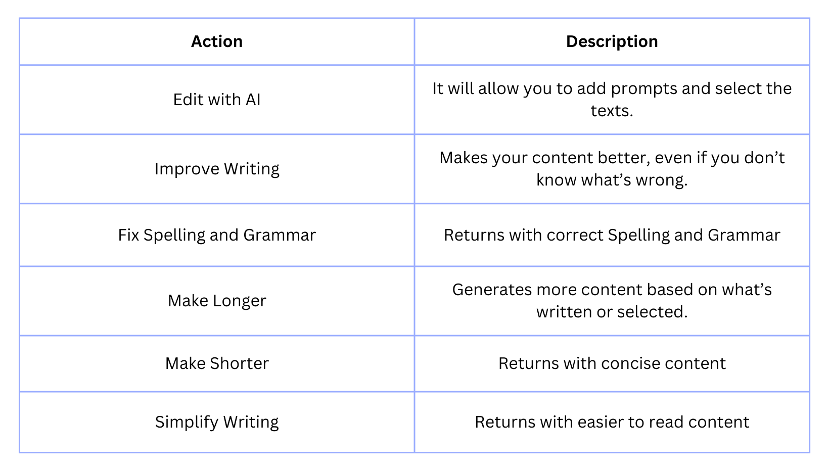 - Note: The text can be selected, or it will consider all the text for using the quick actions.