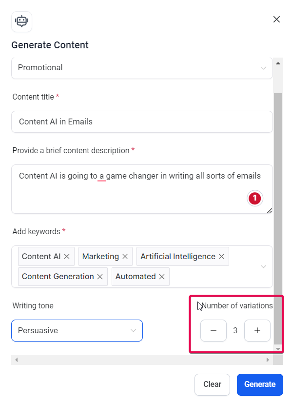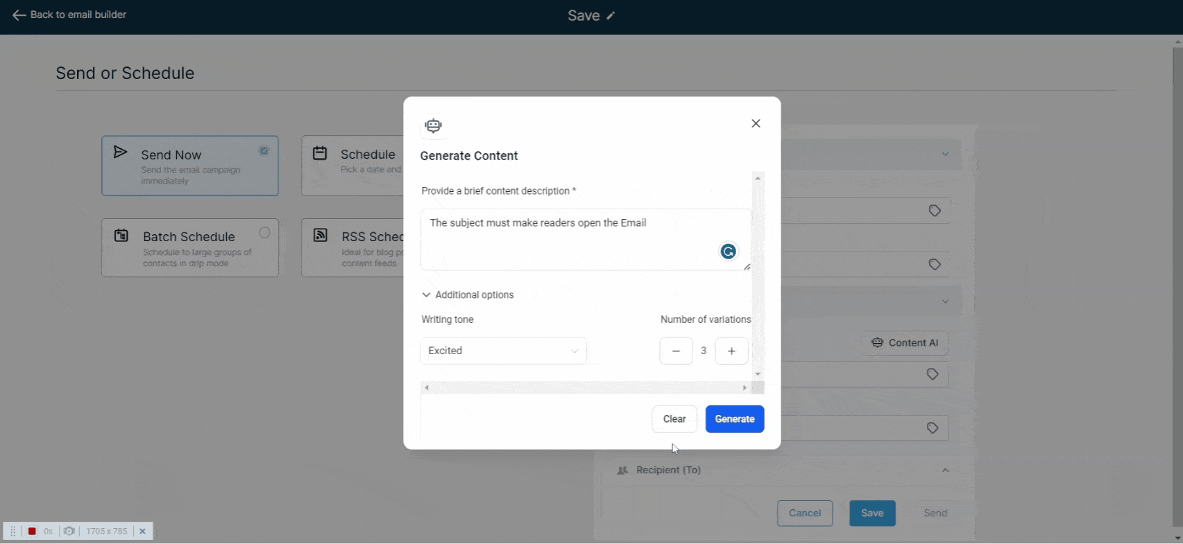 - Variations for A/B testing: Content AI can create variations of email content, including subject lines, which can be used for A/B testing to determine the most effective Content.